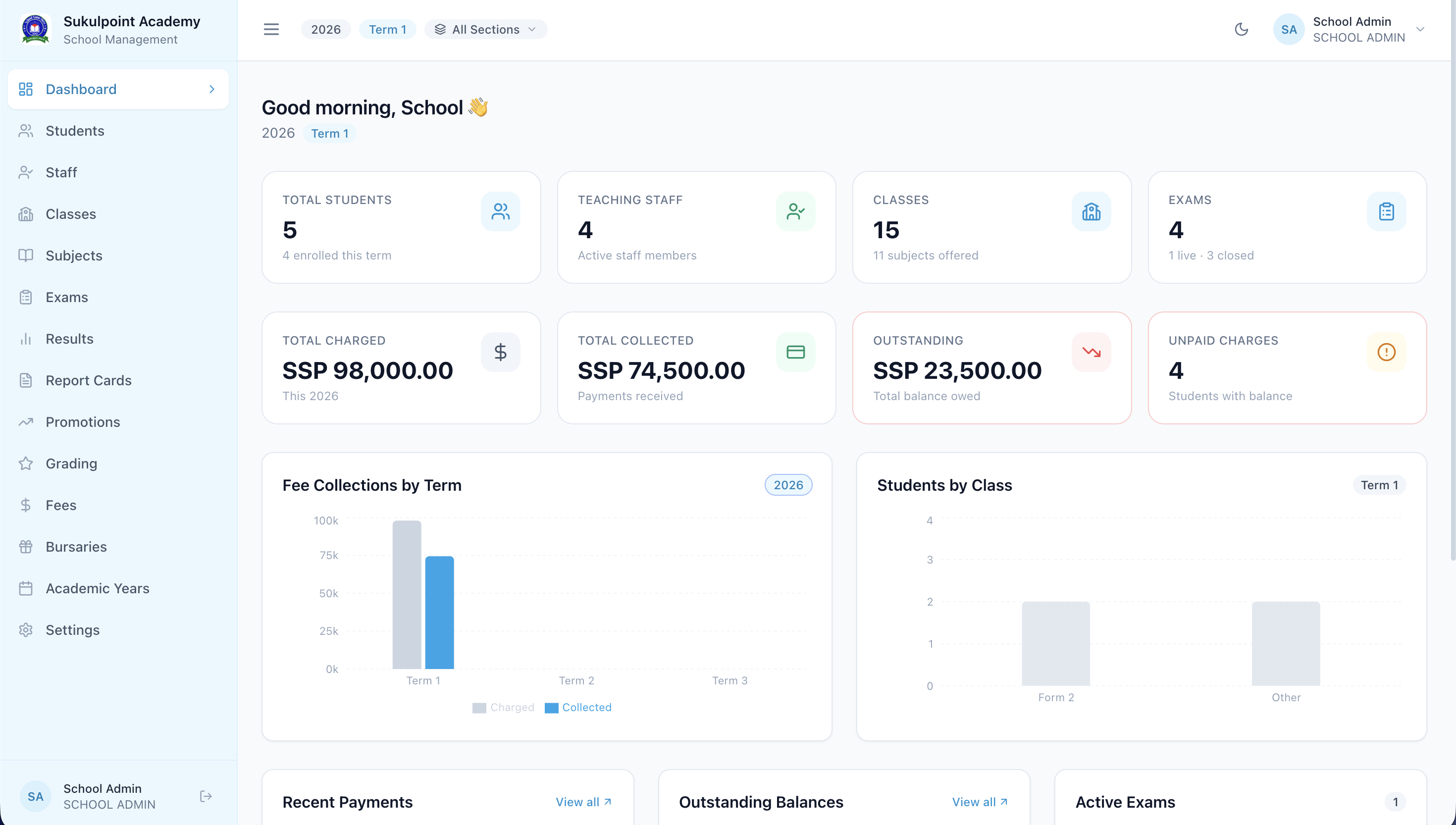 Our school management system in South Sudan is the best and most affordable solution for managing primary and high schools. It simplifies daily school operations and student performance tracking. Designed specifically for South Sudan schools, Sukulpoint offers a comprehensive approach to managing all educational activities. With our school management system, you can stream line staff and students management with ease. Are you looking for a school management system in South Sudan, look further no more, Sukulpoint is right school management software for all primary and high schools.